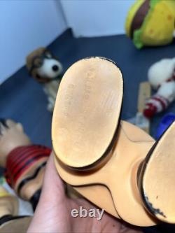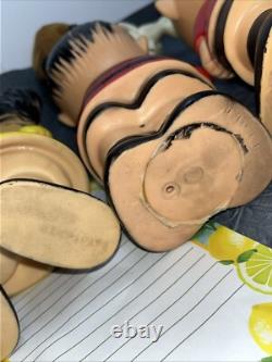 For their age, they are in great condition. Snoopy coin bank included, bottom states 1958, 1966, part of the united syndicate collection. Lucy, Linus, and Charlie Brown, are good. No holes or dry rot. Snoopy is good, but his scarf does have some storage staining that photos show. You will receive all 5 items from a photos.