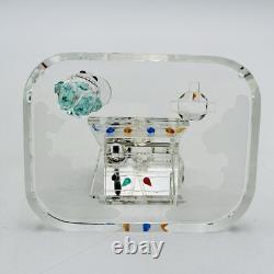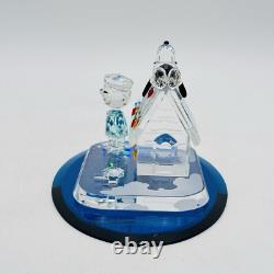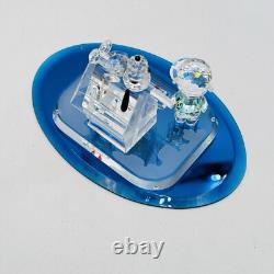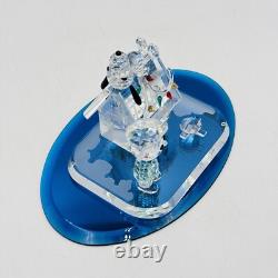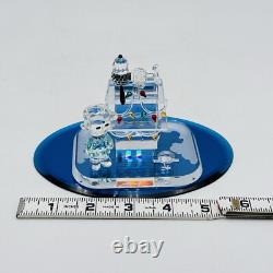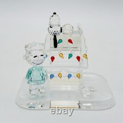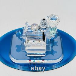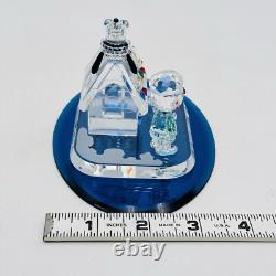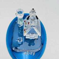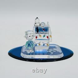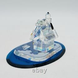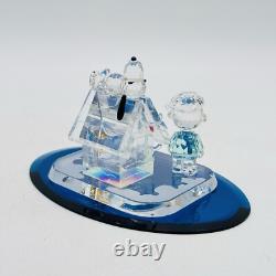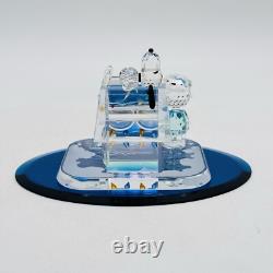 This is a rare Crystal World figurine from the Peanuts collection. The figurine features Snoopy and Charlie Brown and is signed by the artist. It is made of clear crystal and has crystals for features. It is a figurine of a Christmas scene, perfect for any room.