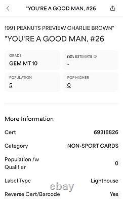 POP 5 PSA 10 RC Charlie Brown 1991 Peanuts Preview You're A Good Man Rookie RARE. One of only five PSA 10s in existence!