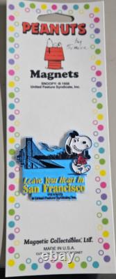 This set of 6 Vintage Snoopy magnets features the famous characters from the Peanuts franchise in various cities. Each magnet showcases a different city with a multicolor design, perfect for fans of the Charlie Brown Christmas movie and TV show.